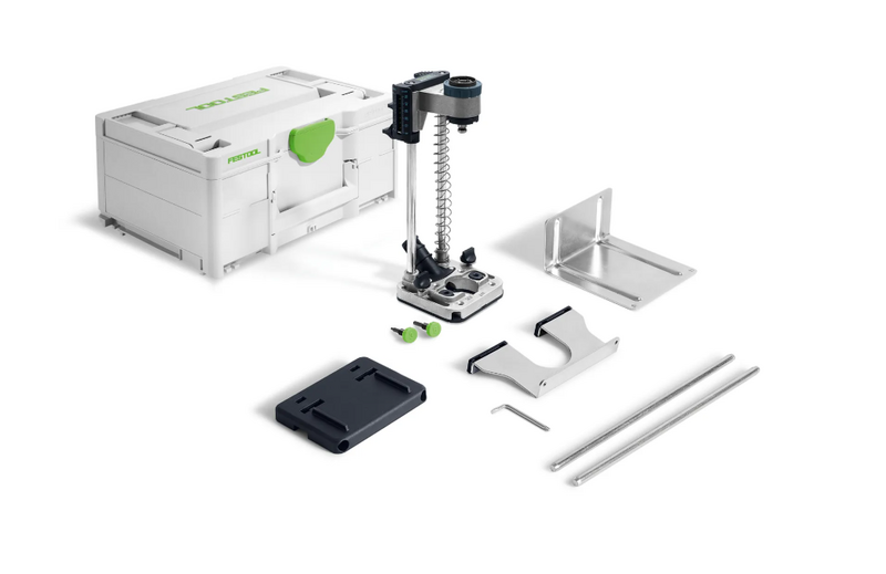 The attachment for straight drilling. Anywhere.The MB 40 mobile drilling attachment is your companion when precision is required. As a compact drilling aid, it enables you to drill at right angles with pinpoint accuracy and repeat accuracy, no matter where you are working. Versatile stops and exact depth adjustment allow you to drill vertical holes, end face holes and a series of holes. For a good view of the drilling point, you can couple the dust extraction directly with the base plate. As a further FastFix attachment, it is ideally suited to your drilling applications in wood, metal and plastic, thus expanding the range of possible uses for your Festool cordless drills.