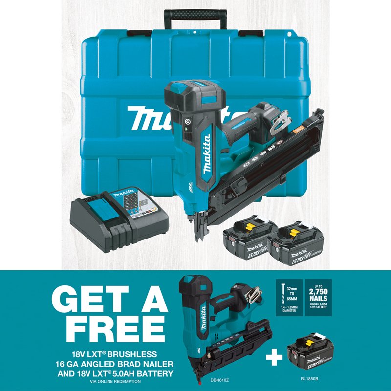18V LXT Brushless 16GA Angled Brad Nailer and 18V LXT 5.0Ah Battery (DBN610Z+BL1850B)