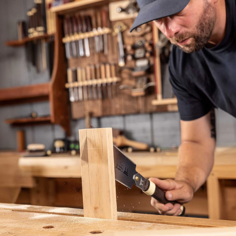 Crafted from premium SK85 Japanese tool steel, this 180mm (7”) blade represents our small-sized Ryoba saw, ideal for a variety of general-purpose applications and excels in cutting small to medium tenons and other joinery tasks. The compact design enhances user control and precision, making it an excellent choice for those new to Japanese saws as well as seasoned professionals seeking a smaller Ryoba for specialized projects.